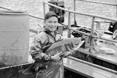 近日,永定区龙湖库区一名员工在捕鱼。 近年来,永定区在龙湖库区积极实施“养鱼护水”,每年投放100吨左右的鲢鳙鱼种,利用鲢鳙鱼等鱼类滤食水中浮游动植物的习性改进和提升水质,使龙湖出境水质常年保持在标准范围,促进了渔业资源的恢复和以水养鱼、以渔治水。